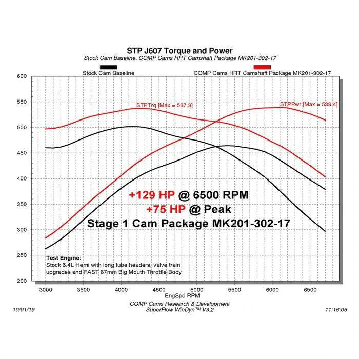 CK201-302-17 Comp Cams 11-25 6.4L 392 (VVT) Stage 1 HRT 218/228 Max Power Hydraulic CAM KIT. COMP Cams Stage 1 HRT 218/228 Max Power Hydraulic Cam Kit delivers broad power gains for your vehicle engine with VVT. This No Springs Required (NSR) camshaft offers excellent top-end performance, improved throttle response, and high-RPM stability. Ideal for performance builds needing reliable horsepower without additional valve train upgrades.
