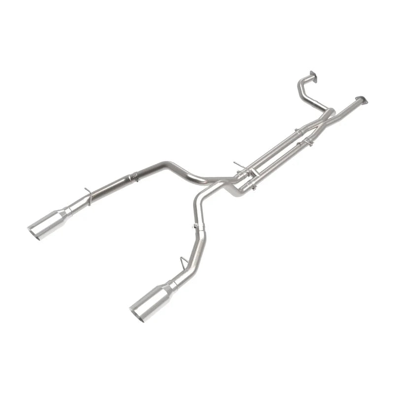 AFE 49-32084-P Vulcan Exhaust System (Polished Tips) for 21-24 Ram 6.2L 1500 TRX. Gain up to +11 HP and +12 lbs. x Ft. TQ. The Vulcan’s unique X / H-pipe design improves the RAM TRX exhaust flow direction and utilizes no mufflers delivering more power and an aggressive tone throughout the RPM range without interfering with driver or passengers hearing in the cab.