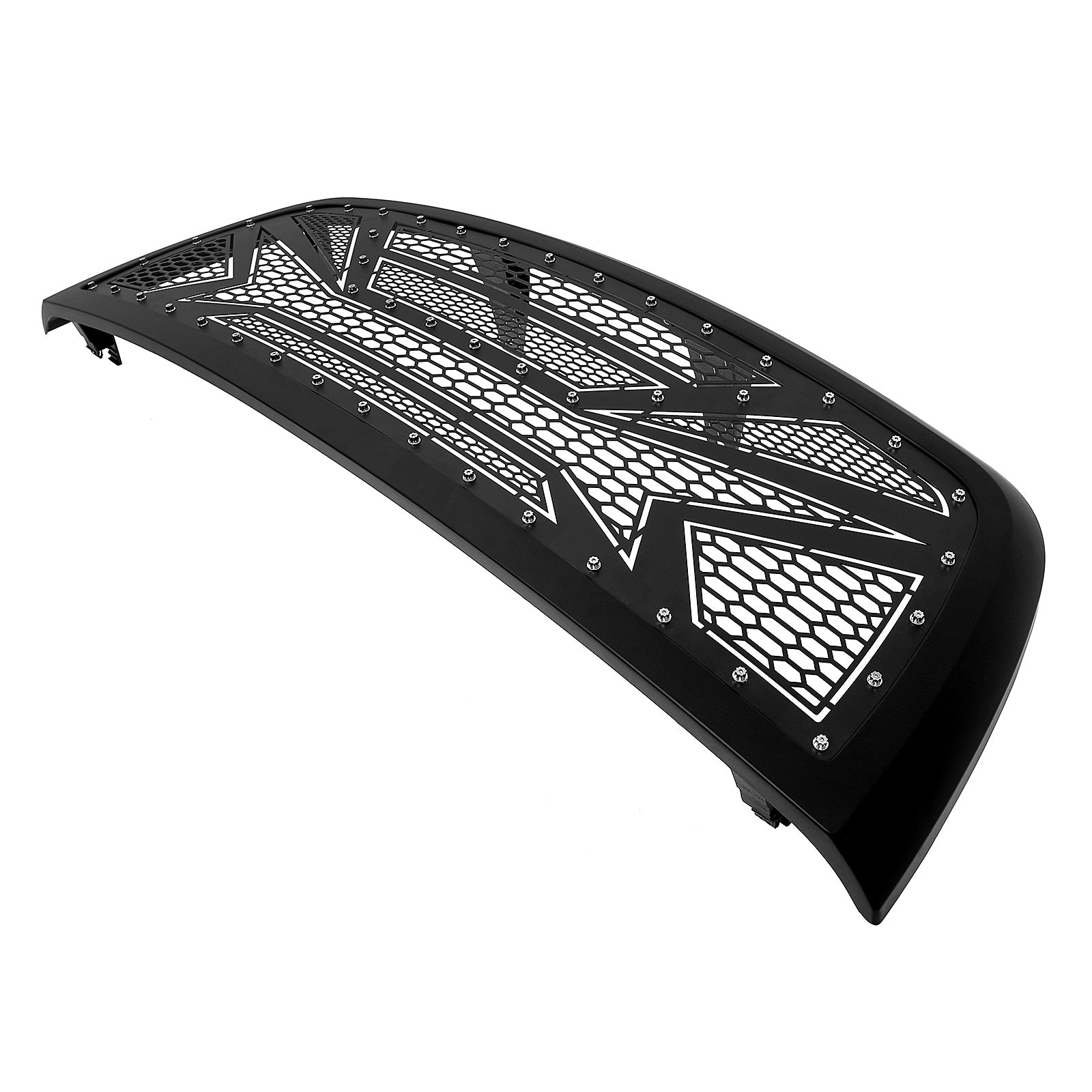 • A unique riveted mesh grille inserts; the sleek grille design gives your vehicle an upgraded appearance.