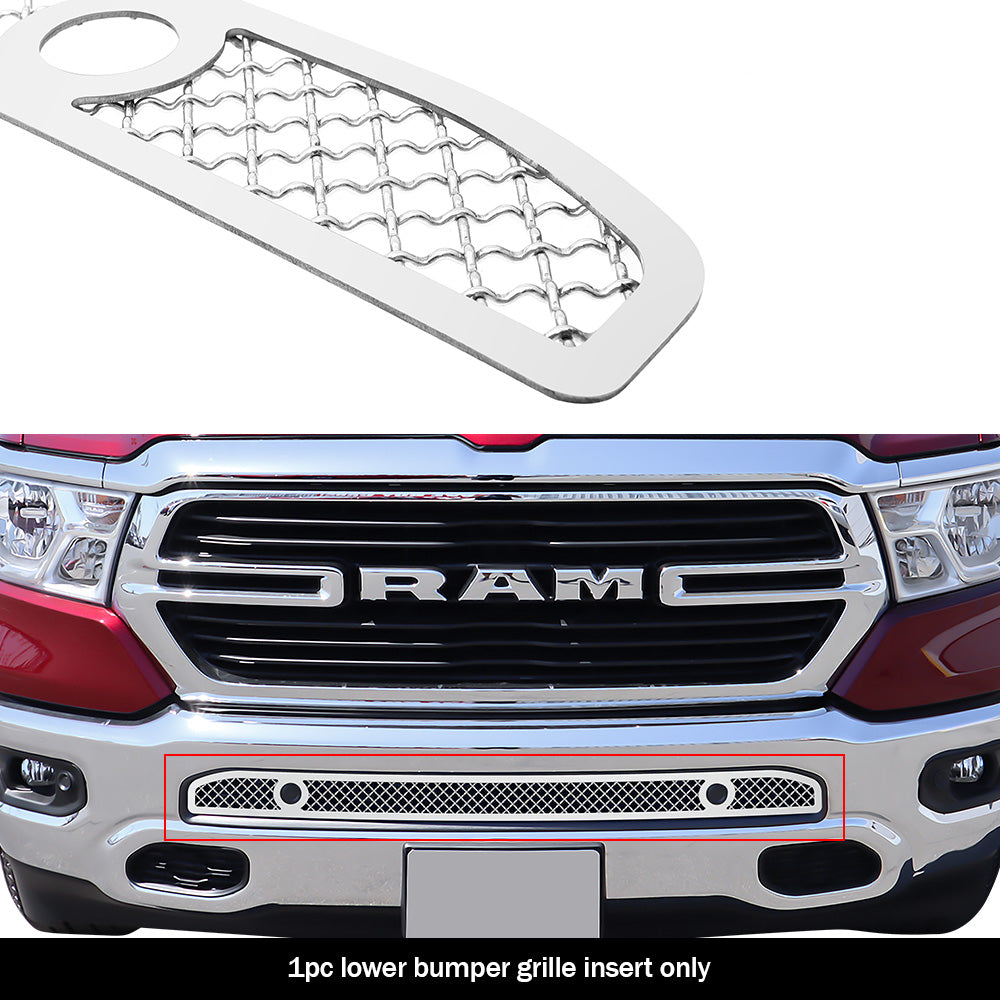 GR04GEJ21S APS 19-24 Ram 1500 Polished Stainless Lower Mesh Grille (WITH Sensor). A unique mesh grille design that adds a rugged and aggressive look and gives an upgraded appearance to your vehicle.
