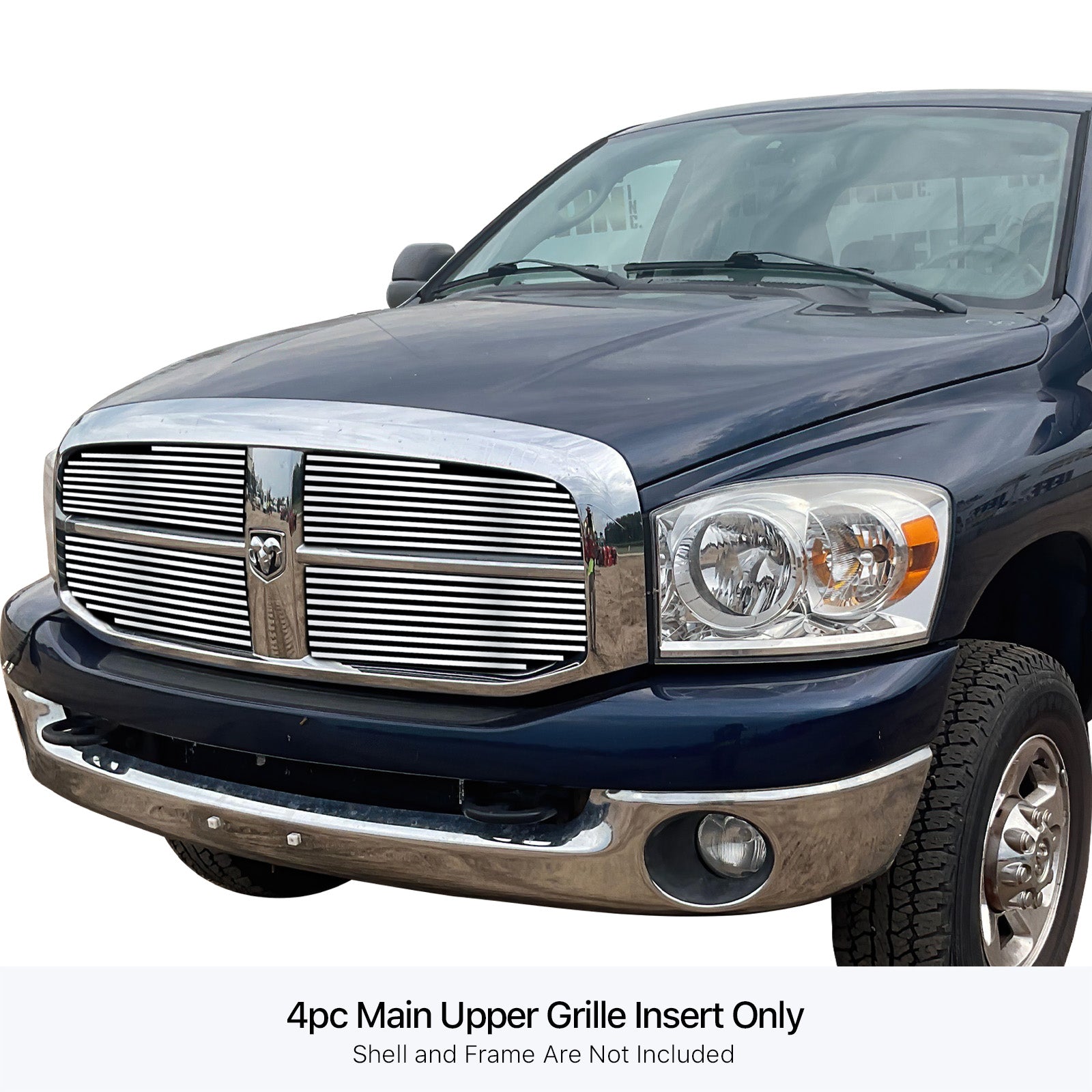 GR04FEG19S APS 06-08 Dodge Ram Upper Billet Grille (Version 2). A unique and sleek design that enhances the look of your vehicle.• Made from high-quality stainless steel in a sleek polish finish; to ensure durability and long-lasting performance.