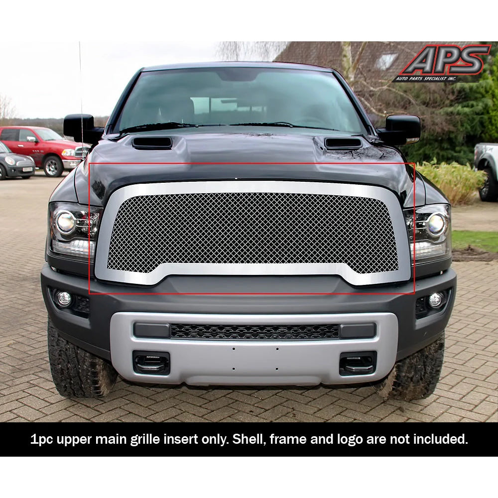 GR04GFC77S APS 15-18 Ram 1500 Polished Stainless Upper Mesh Grille Rebel. A unique mesh grille design that adds a rugged and aggressive look and gives an upgraded appearance to your vehicle.
