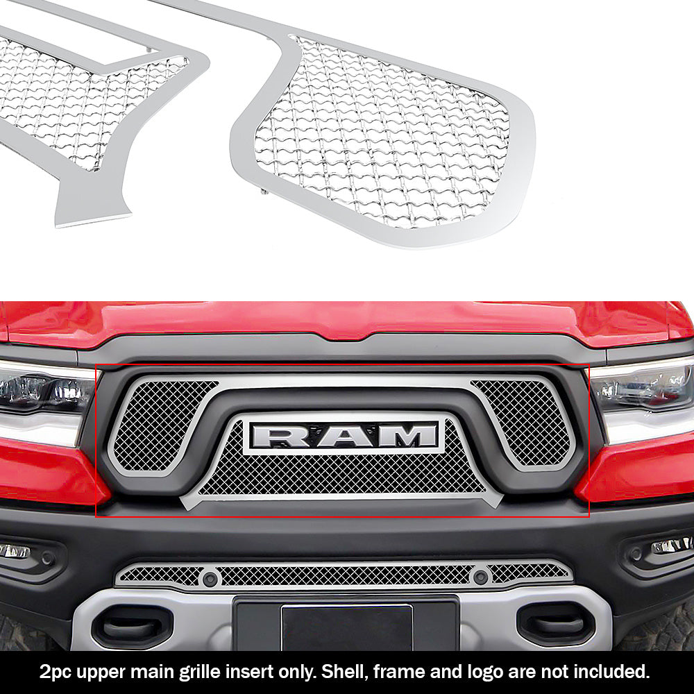GR04GEB03S APS 19-24 Ram 1500 Polished Stainless Upper Mesh Grille Rebel. A unique mesh grille design that adds a rugged and aggressive look and gives an upgraded appearance to your vehicle.