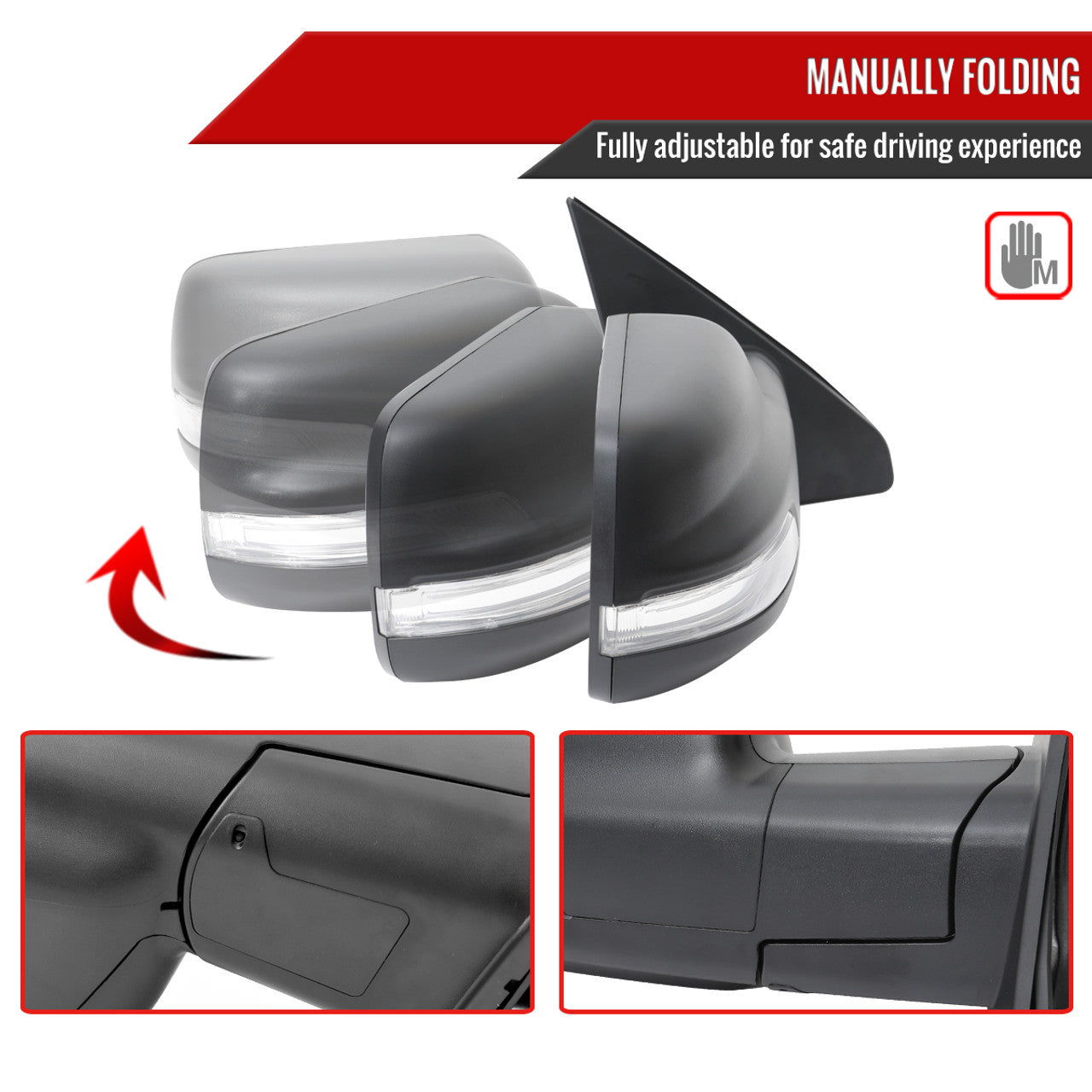 - Manual folding function lets you adjust the mirror position