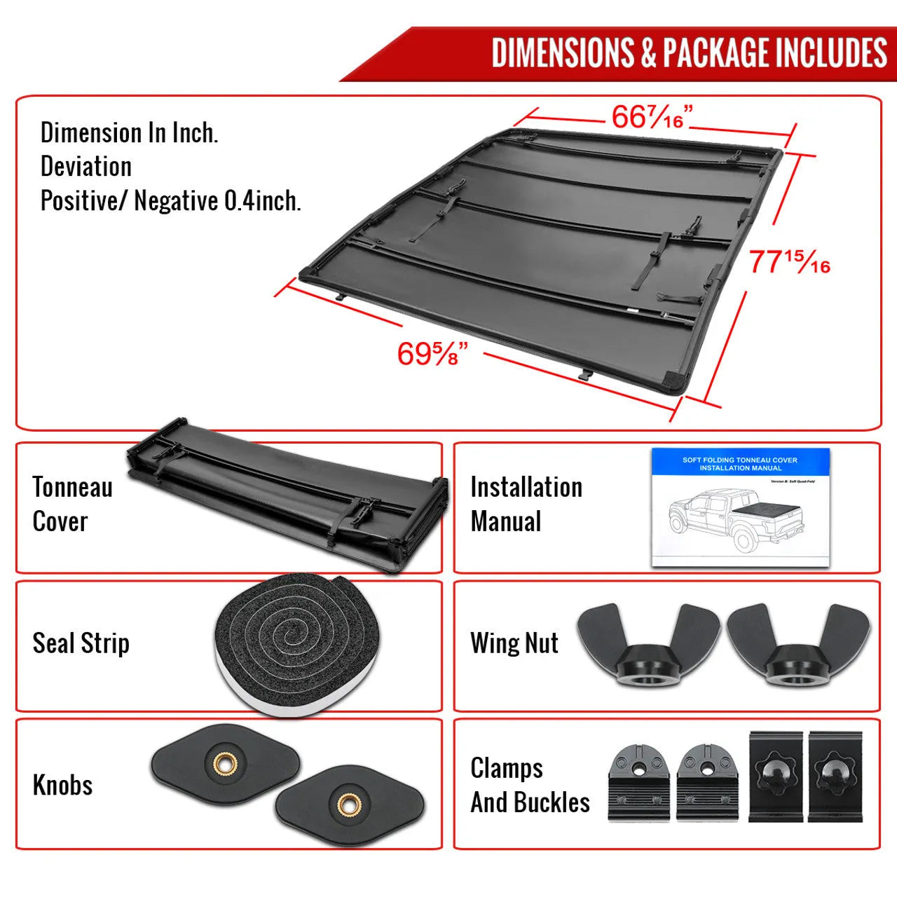 - Quad-fold design allows for convenient folding to access the truck bed without removing the cover