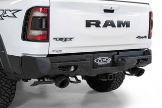 Addictive Desert Designs Bomber Rear Bumper: Ram 1500 TRX (2021-23) - Hammer Black/Satin Black w/ Cube Light Mounts and Sensor Cutouts