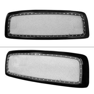 Spec D Rivet Style Stainless Steel Mesh Grille (Glossy Black Outer): Dodge Ram 2002 - 2005