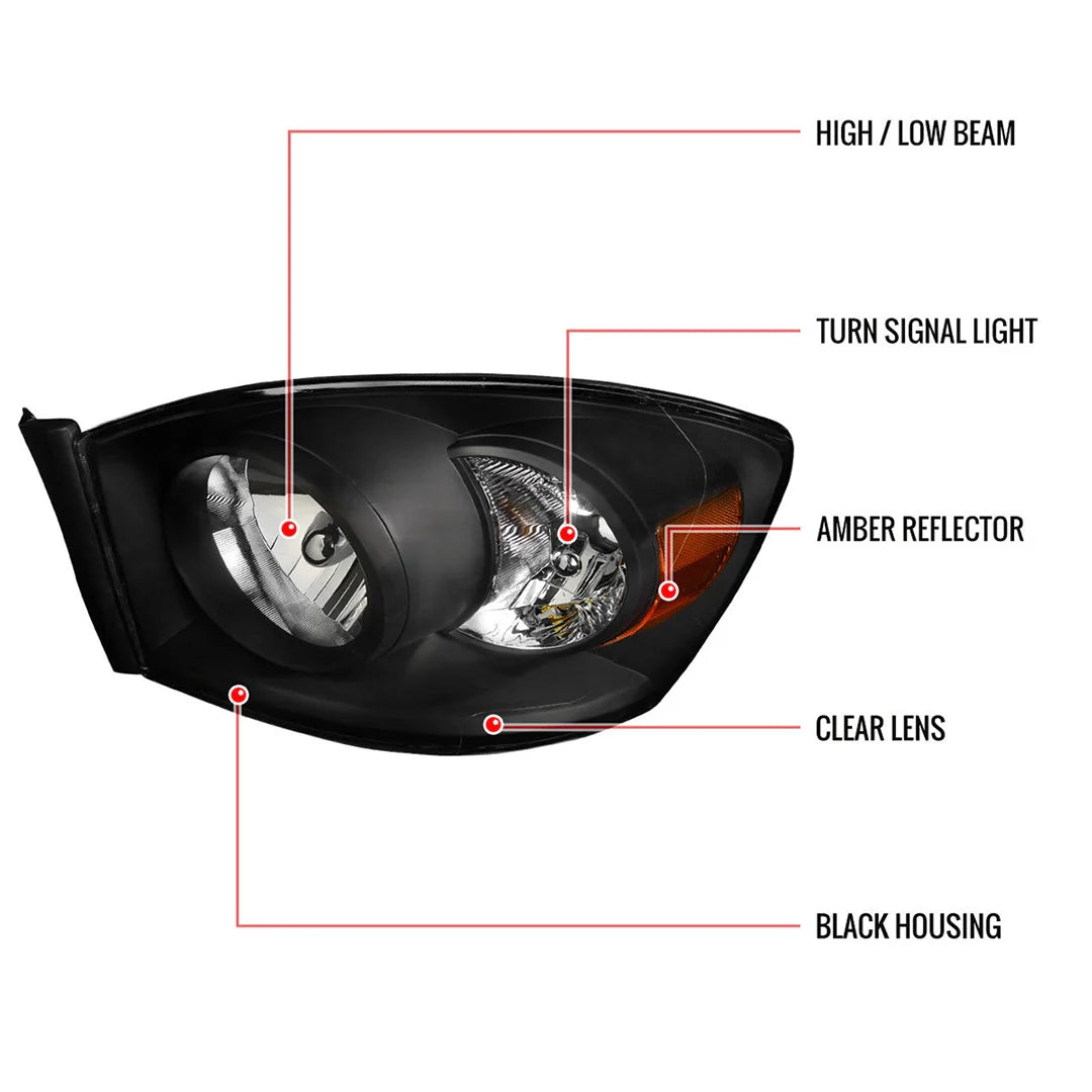 Spec D Euro Head Lights (Black): Dodge Ram 2006 - 2008
