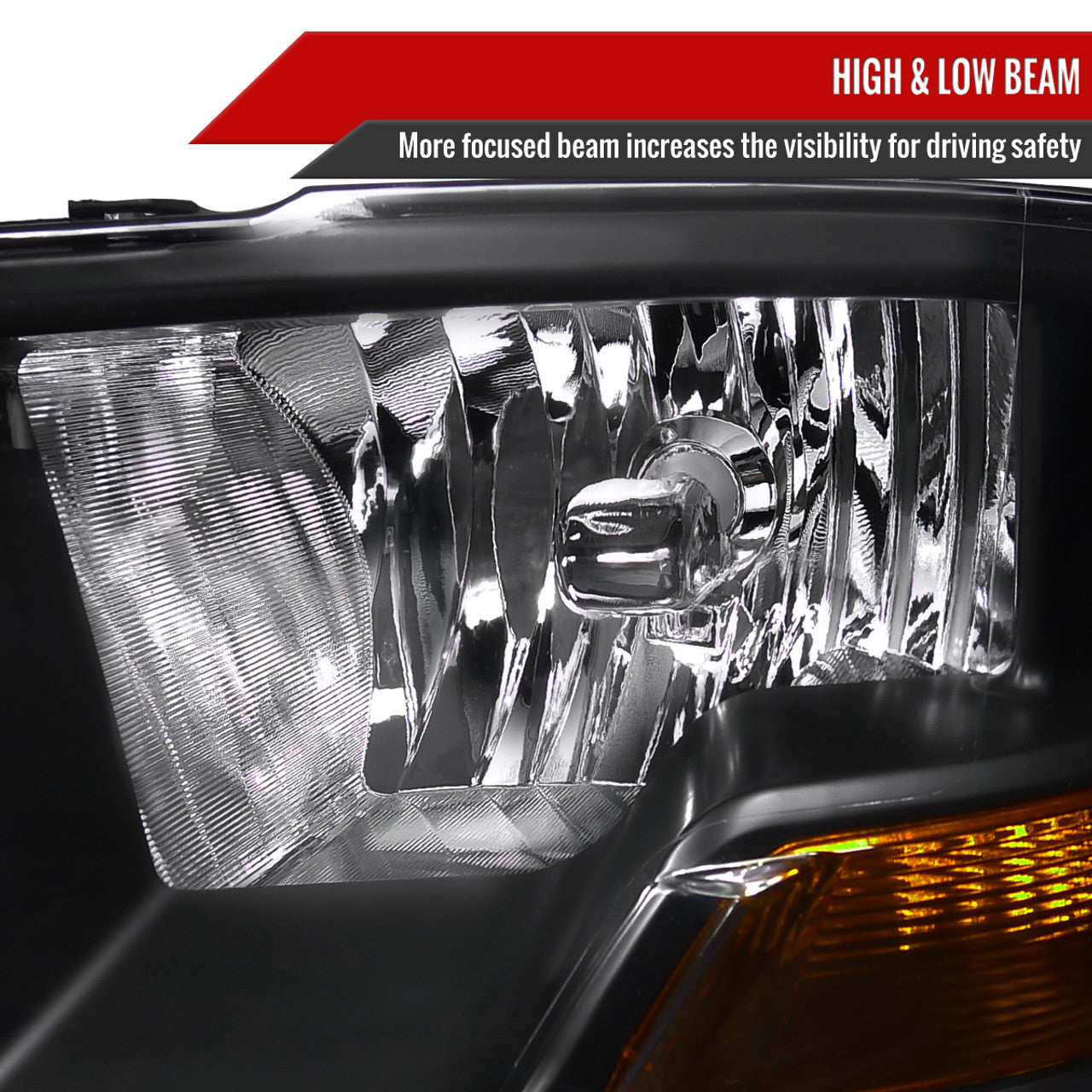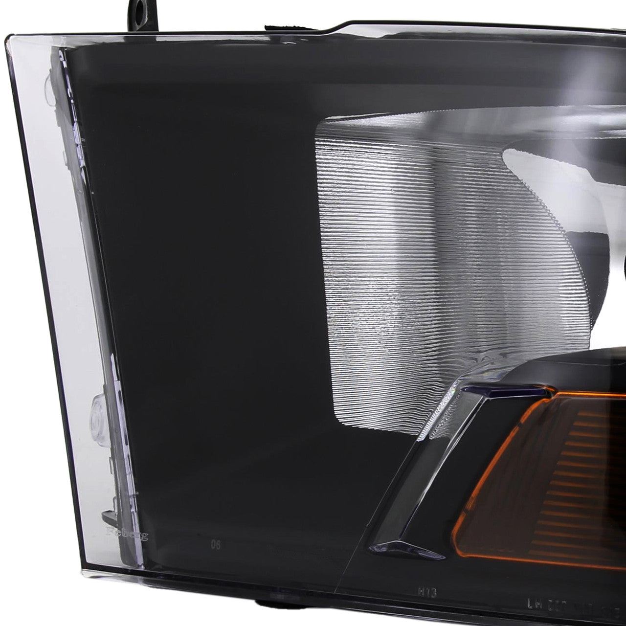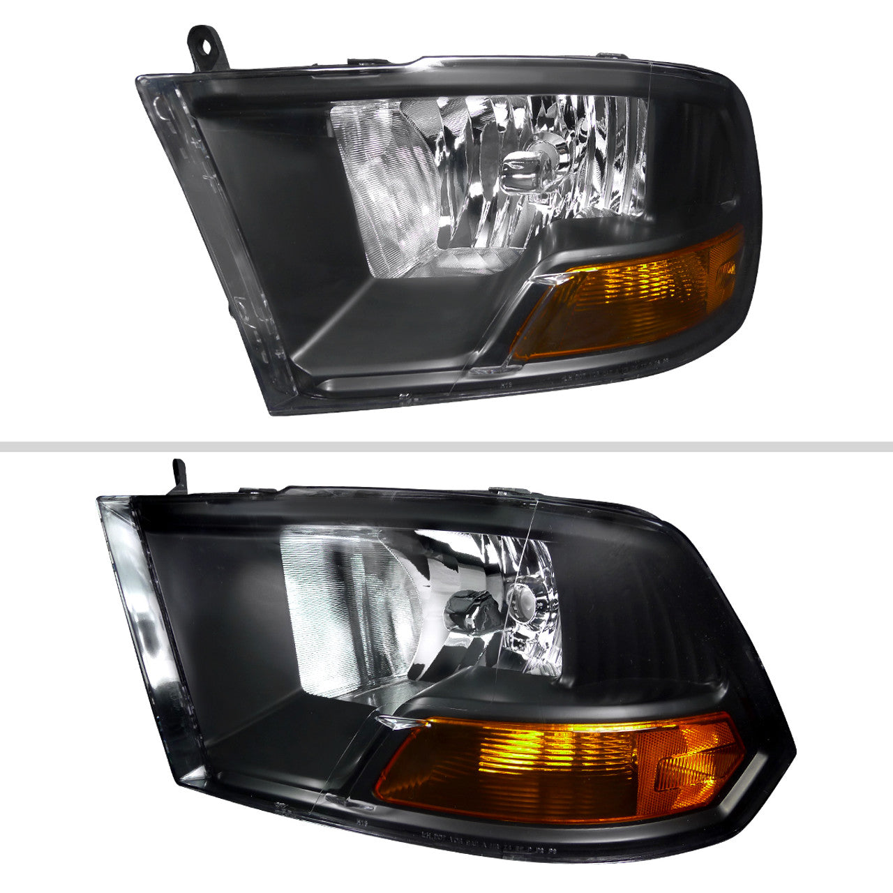 2LH-DGP09JM-RS Spec D 09-18 Dodge Ram Euro Headlights (Black). Comes with 1 pair of euro style black housing clear lens headlights with amber turn signal lamps.
