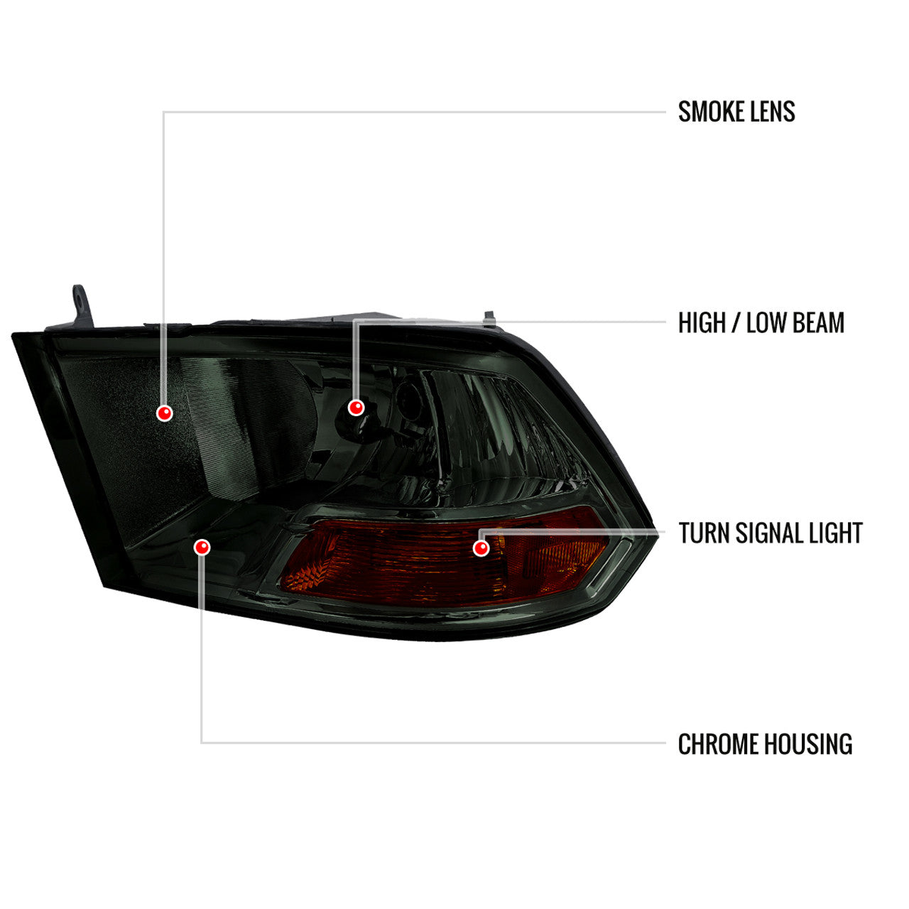 Spec D Euro Headlights (Smoke): Dodge Ram 2009 - 2018