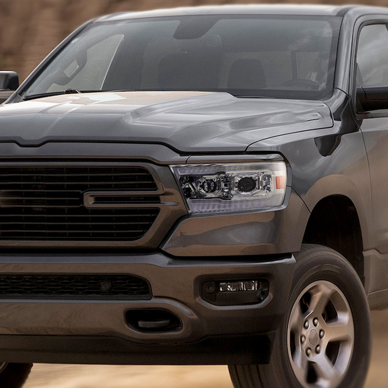 Spec D Projector Halo Headlights (Chrome w/ Sequential Turn Signal): Ram 1500 2019 - 2024