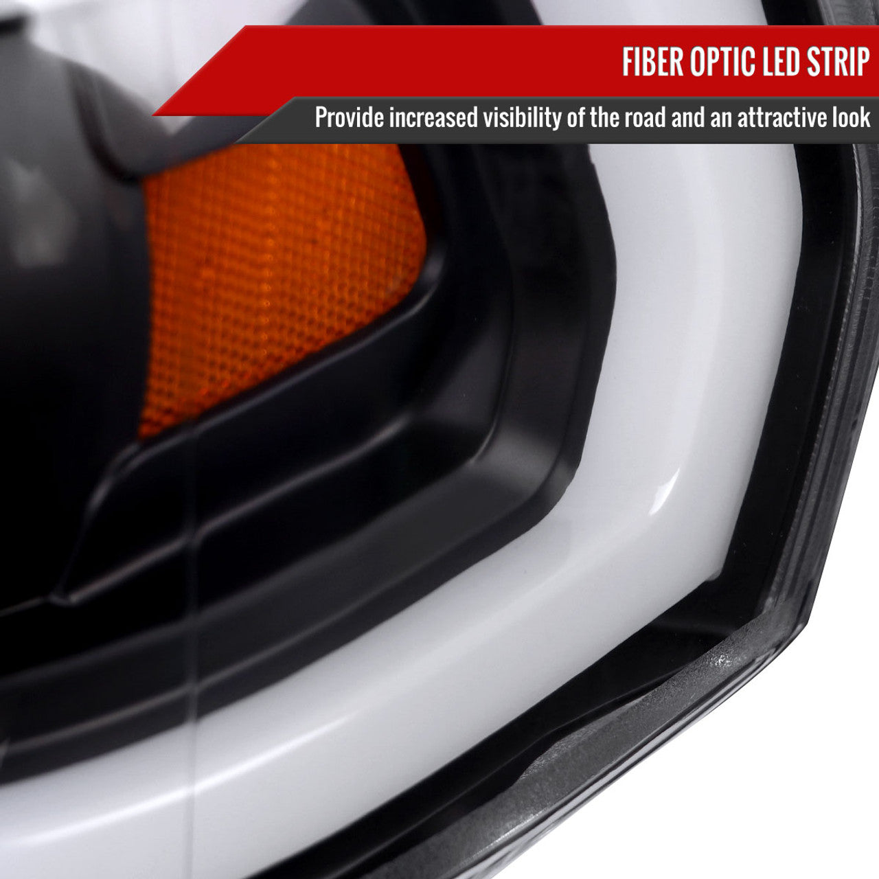 • Comes with (1) pair of matte black housing bright white LED strip/bar with clear lens projector headlights