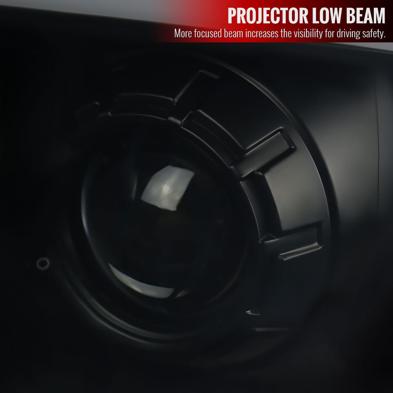 - Includes (1) pair of dual projector style headlights with switchback, sequential LED turn signal in black housing with smoke lens