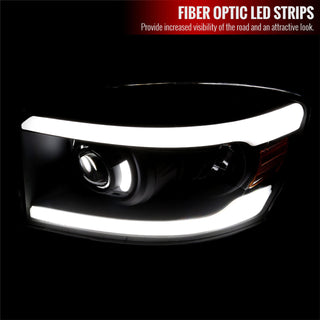 Spec D Projector Halo Headlights w/ LED Bar (Black): Dodge Ram 2006 - 2008
