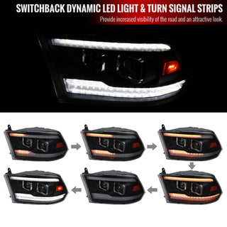 Spec D DRL LED Projector Headlights (White w/ Switchback Sequential Signal): Ram 1500 2019 - 2024