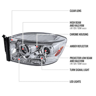 Spec D LED Projector Headlights (Chrome): Dodge Ram 2006 - 2008