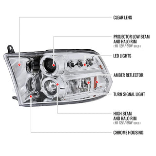 Spec D LED Projector Headlights (Chrome): Dodge Ram 2009 - 2018