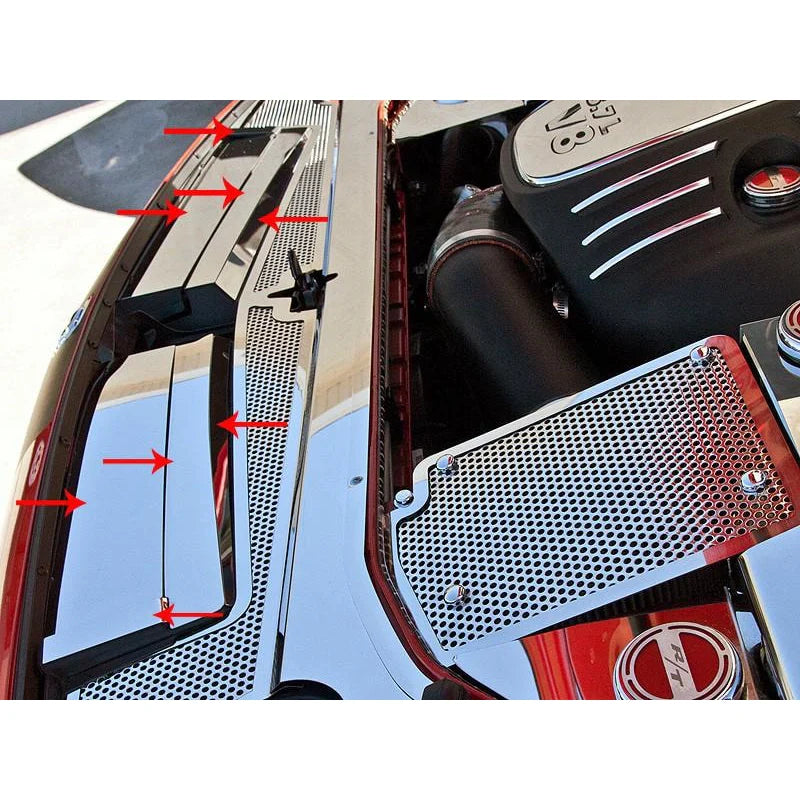 These trim pieces are designed to fit in front of the radiator in the header plate area and add a clean stylish look to your vehicle engine bay.