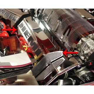 American Car Craft "HEMI" Polished / Perforated Fuel Rail Covers (Factory Air Box): 300C / Challenger / Charger / Magnum 6.1L SRT8 2006 - 2010
