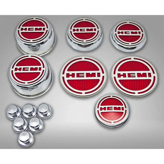 American Car Craft "HEMI" Deluxe Fluid & Shock Tower Cap Covers (13PC): Dodge Challenger V8 2008 - 2023