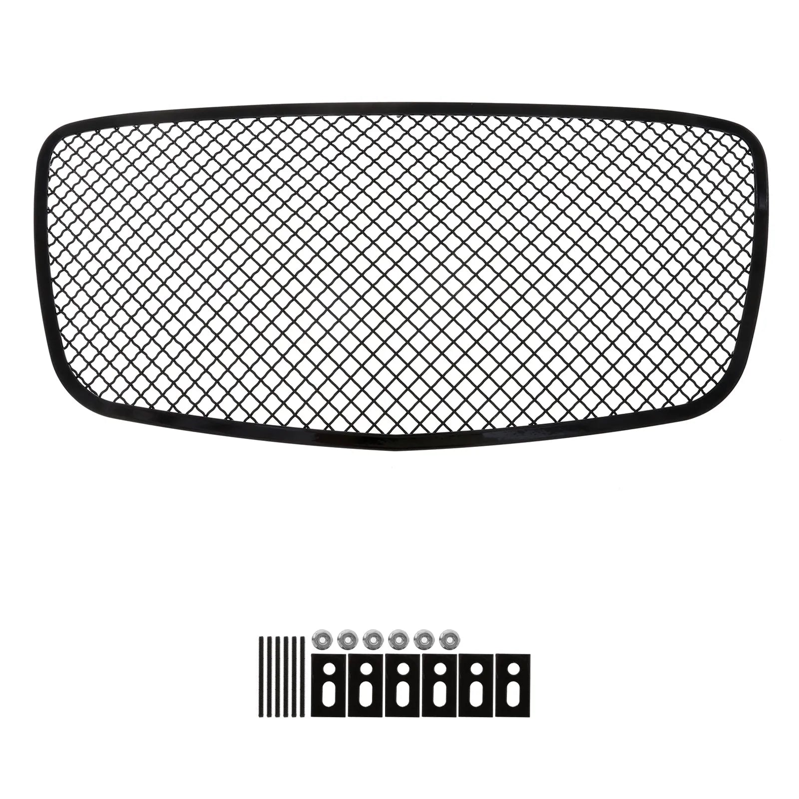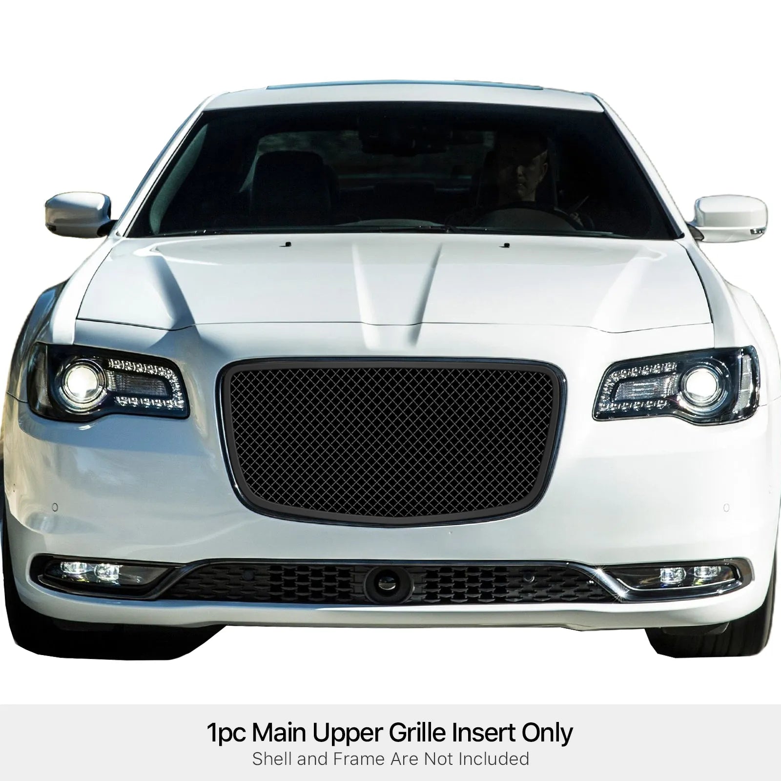 GR18GFC78K APS 15-24 Chrysler 300 Black Stainless Upper Mesh Grille. This grille features a rugged black mesh design that enhances your Chrysler 300's aggressive appearance. Crafted from high-quality stainless steel, it offers superior durability and corrosion resistance. The mesh design improves engine airflow, boosting performance and fuel efficiency, while providing extra protection against debris. Installation is straightforward with included hardware and no drilling required, making it a perfect upgrade for style and function.