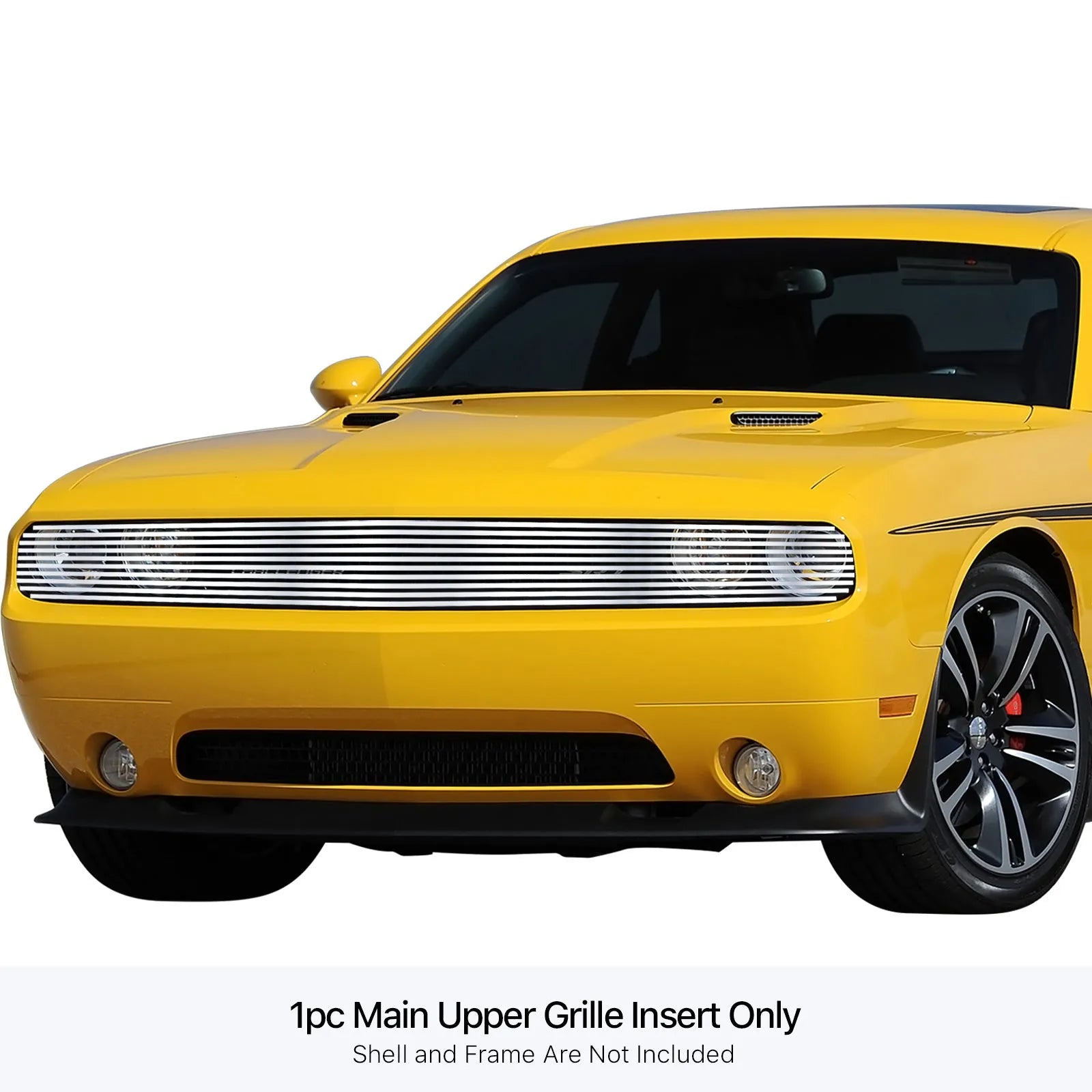 GR04FEI89M APS 08-14 Dodge Challenger Phantom Stainless Upper Billet Grille. This billet grille features a sleek, closely spaced bar design that enhances your Challenger's front-end appearance while providing superior protection against road debris. Crafted from high-quality stainless steel with polished and black powder-coated finishes, it ensures durability and long-lasting performance. Designed to improve engine airflow, it can boost performance and fuel efficiency. Easy to install with included hardware and simple to maintain, this overlay grille requires no drilling, making it a perfect upgrade for style and function.