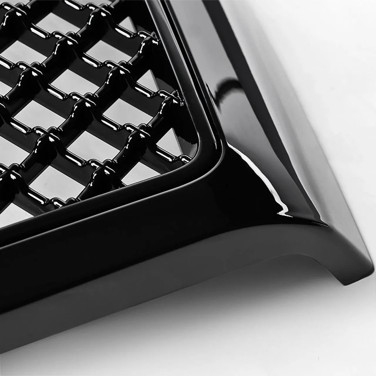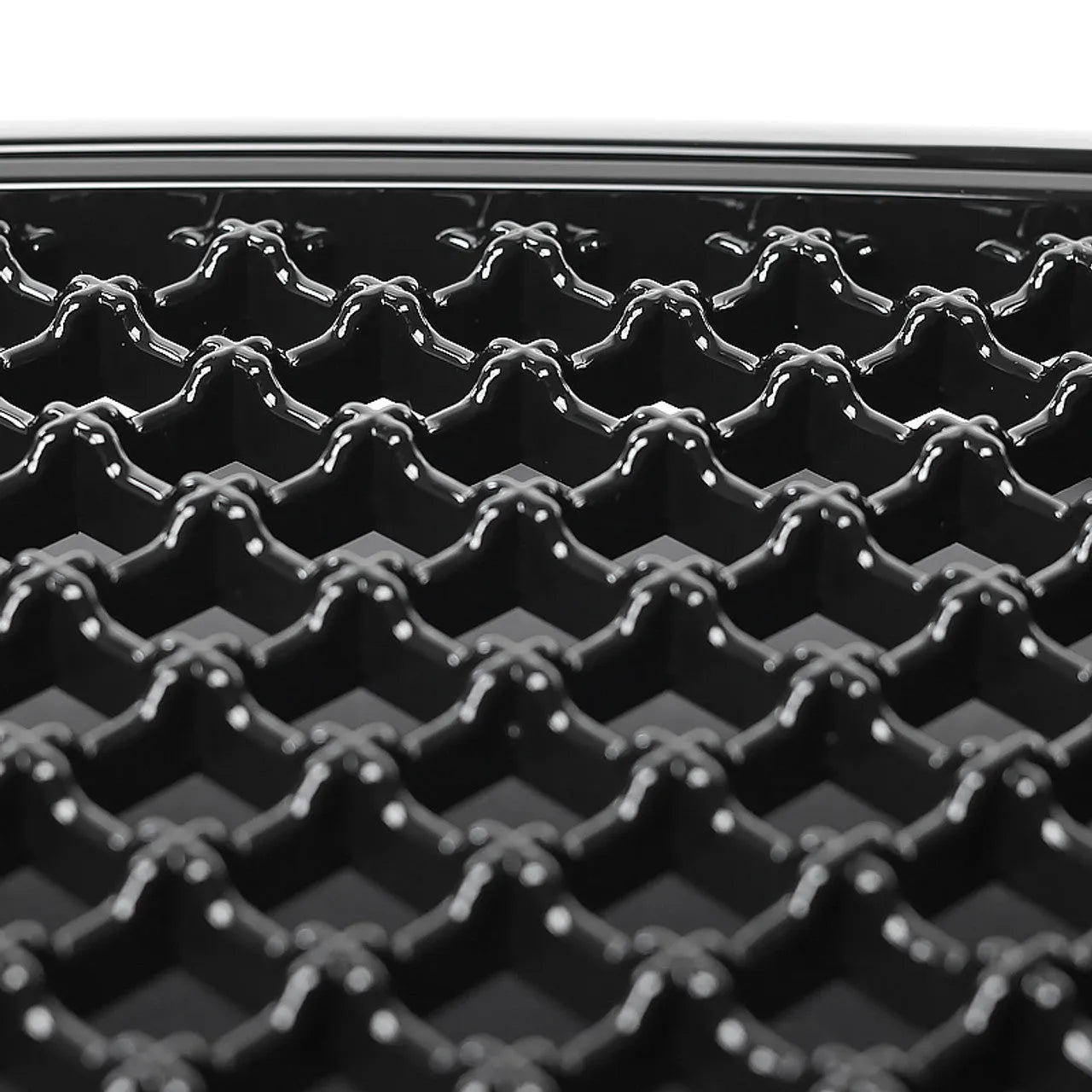 The grille is constructed from premium ABS plastic, known for its excellent strength-to-weight ratio and resistance to impact and weathering. This material ensures the grille remains lightweight yet sturdy enough to withstand road debris and environmental exposure. The glossy black finish is applied with precision to provide a deep, reflective surface that resists fading and chipping over time.