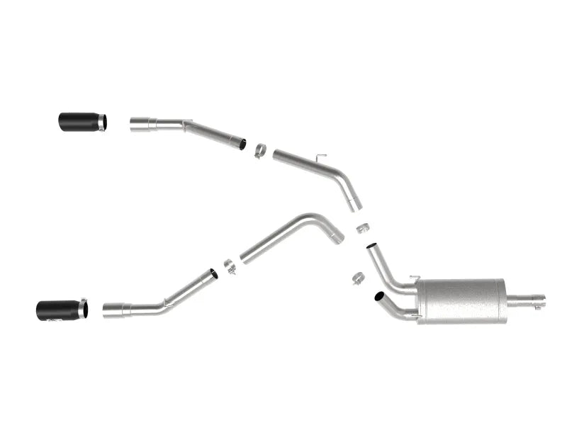 - Dual 5" diameter black stainless steel clamp-on exhaust tips with aFe POWER logo plate