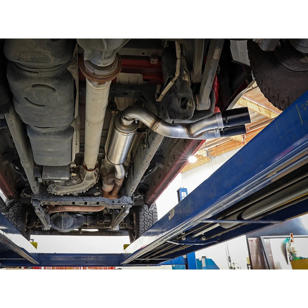 Unleash both power and sound with this high-performance cat-back exhaust system, crafted for strength, durability, and head-turning style. Constructed from robust 3-1/2" mandrel-bent 409 stainless steel tubing, the system ensures optimal exhaust flow and long-lasting performance under harsh conditions.