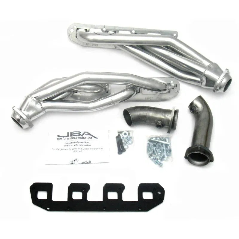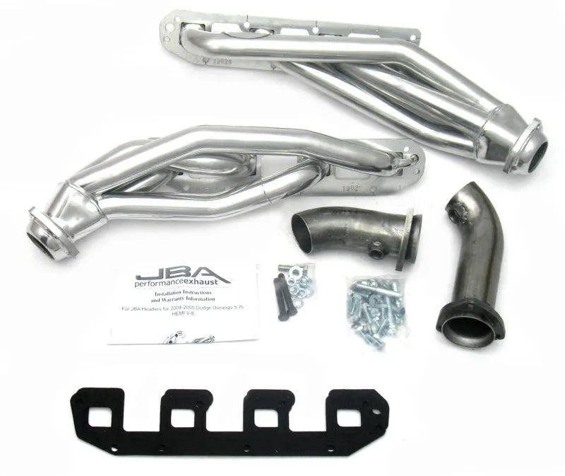 1962SJS JBA 04-09 Dodge Durango Shorty Headers (Silver Ceramic). JBA Shorty Headers are a top performance upgrade for your Dodge Durango 5.7L Hemi, offering significantly less restriction than stock manifolds. Crafted from mandrel bent stainless steel with thick machined flanges and oversized ports, they enhance power and efficiency. The proprietary Firecone collector design maximizes torque and horsepower where you need it most. Includes factory-style emission connections and high-quality hardware for a professional, no-leak installation. Durable enough for racing, towing, and daily driving.