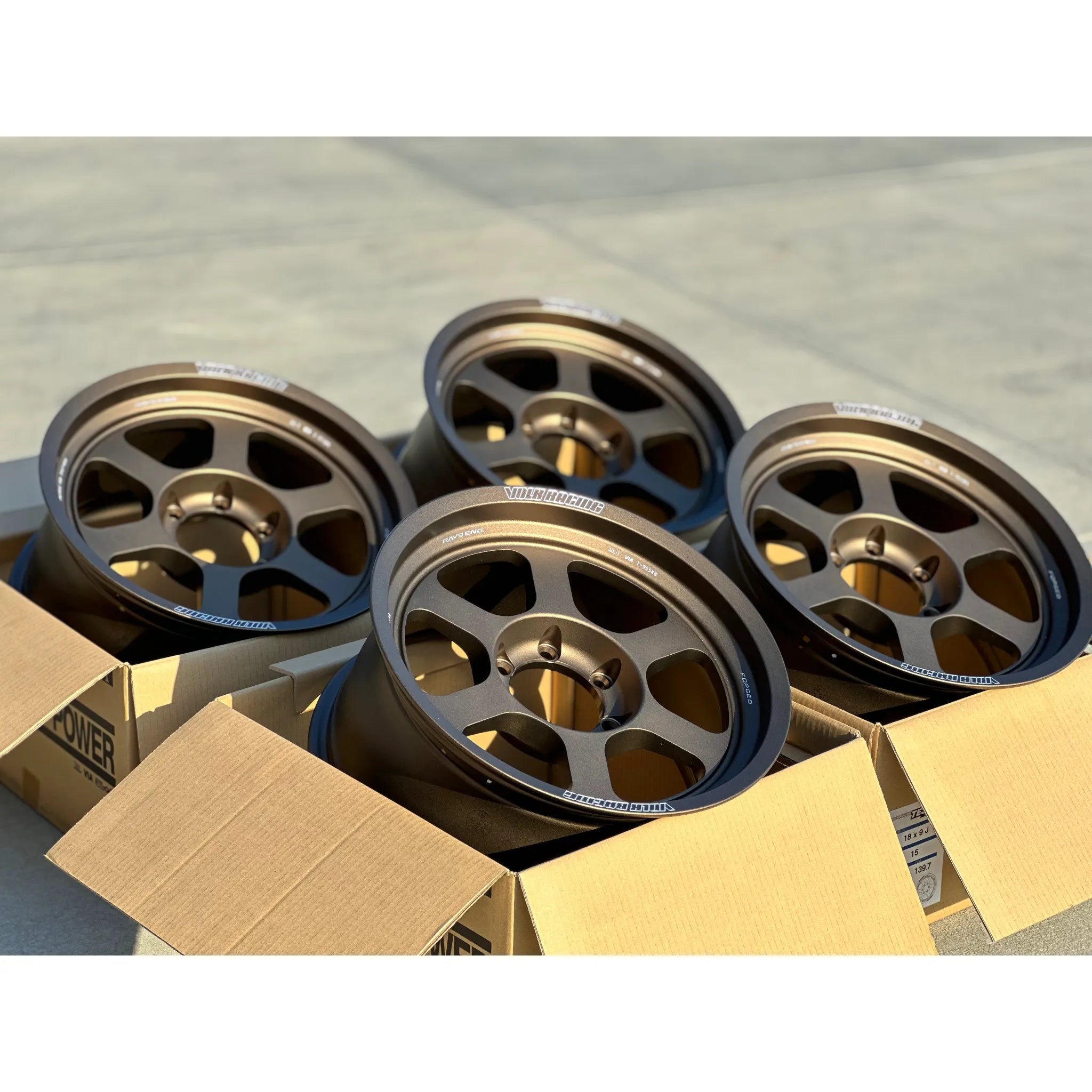 Authentic Volk Racing TE37XT M-Spec wheels in rugged fitment for high-performance trucks. Forged monoblock construction with reinforced six-spoke design for strength and reduced unsprung weight.