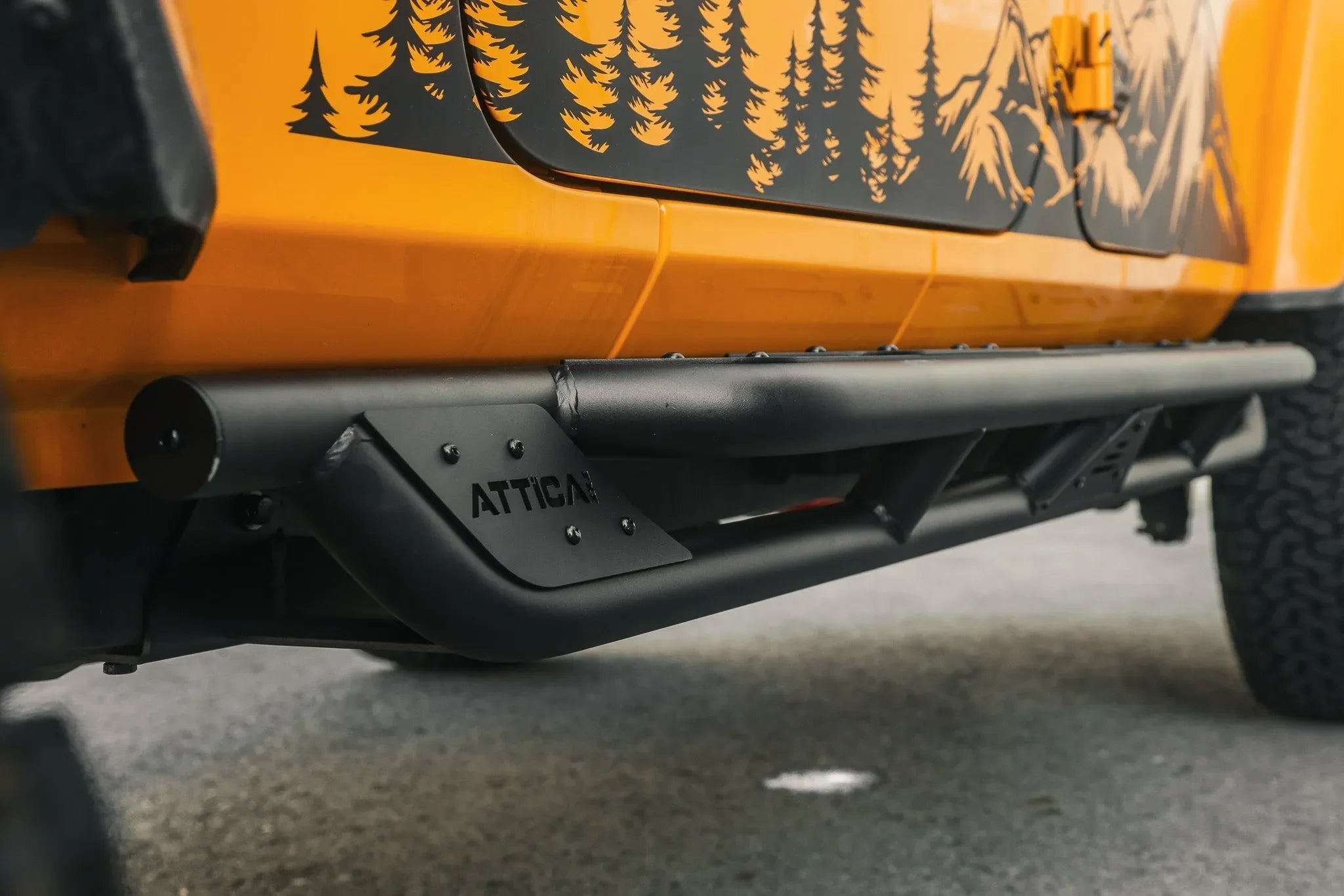ATTJT02C104-BX Attica 4x4 Jeep Gladiator 2020-2024 Terra Series Side Steps. Attica 4x4 Terra Series Side Steps provide sturdy, reliable protection and easy access for your 2020-2024 Jeep Gladiator. Crafted from durable steel, these side steps withstand tough off-road conditions while enhancing your vehicle’s rugged look. Ideal for adventure enthusiasts seeking both functionality and durability on every trail.