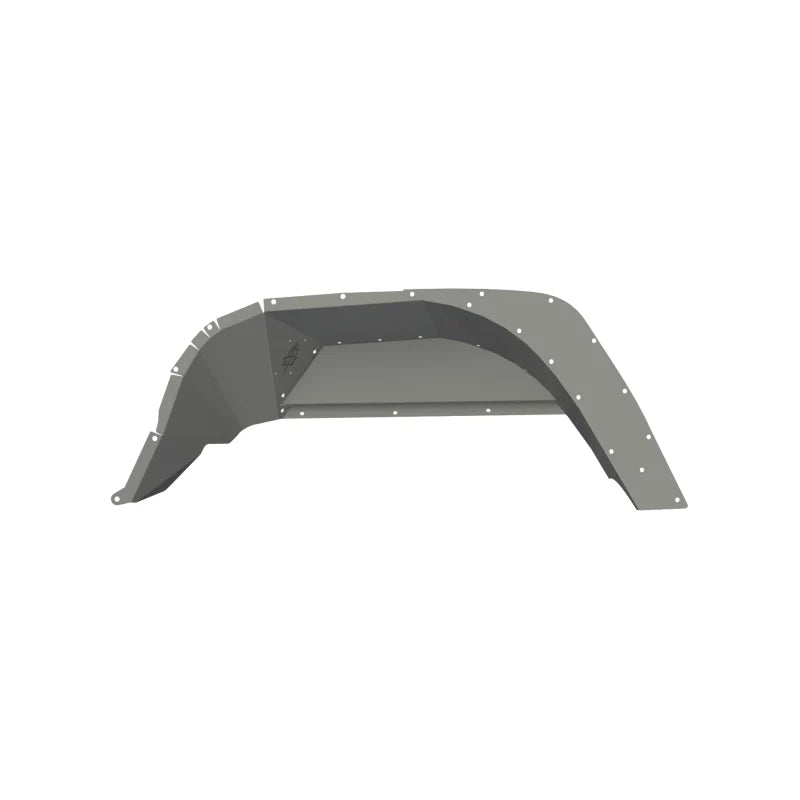 The Raw Stealth Rear Fender Liner is crafted from high-quality raw steel, chosen for its toughness and ability to absorb impacts from trail hazards. The steel is precision-cut and formed to match the exact contours of the Jeep Gladiator JT’s rear wheel wells, ensuring a snug, factory-like fit. This design minimizes gaps where dirt and moisture could accumulate, helping to prevent rust and corrosion over time.