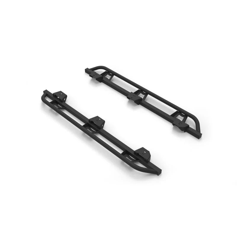 The N-FAB Trail Slider Steps are rugged, body-mounted rock sliders designed to protect your Jeep Wrangler Unlimited and Grand Cherokee from harsh off-road obstacles while providing a convenient stepping surface. Crafted for serious off-road enthusiasts, these steps combine heavy-duty protection with functional utility, making them an essential upgrade for your vehicle. Their durable textured black finish complements the aggressive styling of your Jeep while resisting wear and corrosion in extreme environments.
