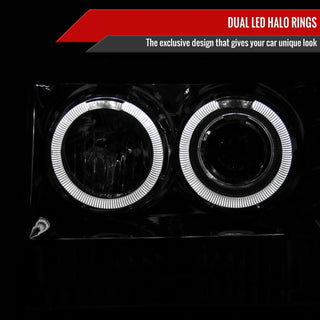 Spec D Projector Halo Headlights (Black): Jeep Grand Cherokee 1993 - 1996