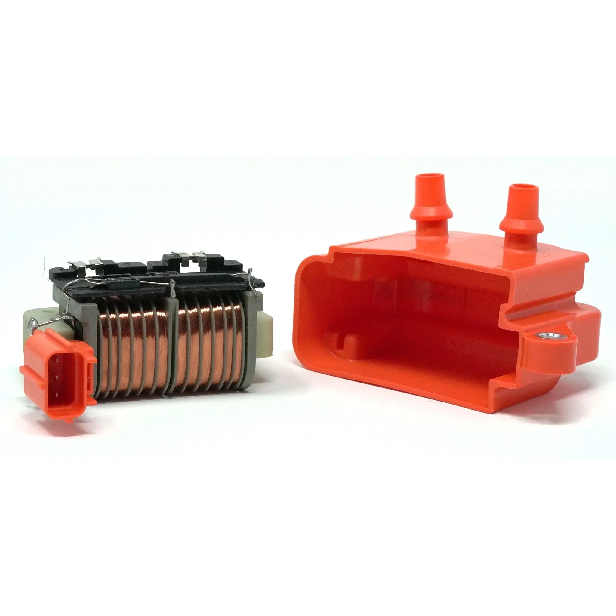 - Heavy Duty, high-temperature, epoxy filled housing resists shock and vibration. Our dielectric compound completely penetrates coil windings assuring perfect insulation even upon exposure to high voltage conditions. Engineered to resist humidity, wear, vibration, impact and chemicals such as gasoline, oils and brake fluids. Will not degrade or crack even under severe thermal cycling.