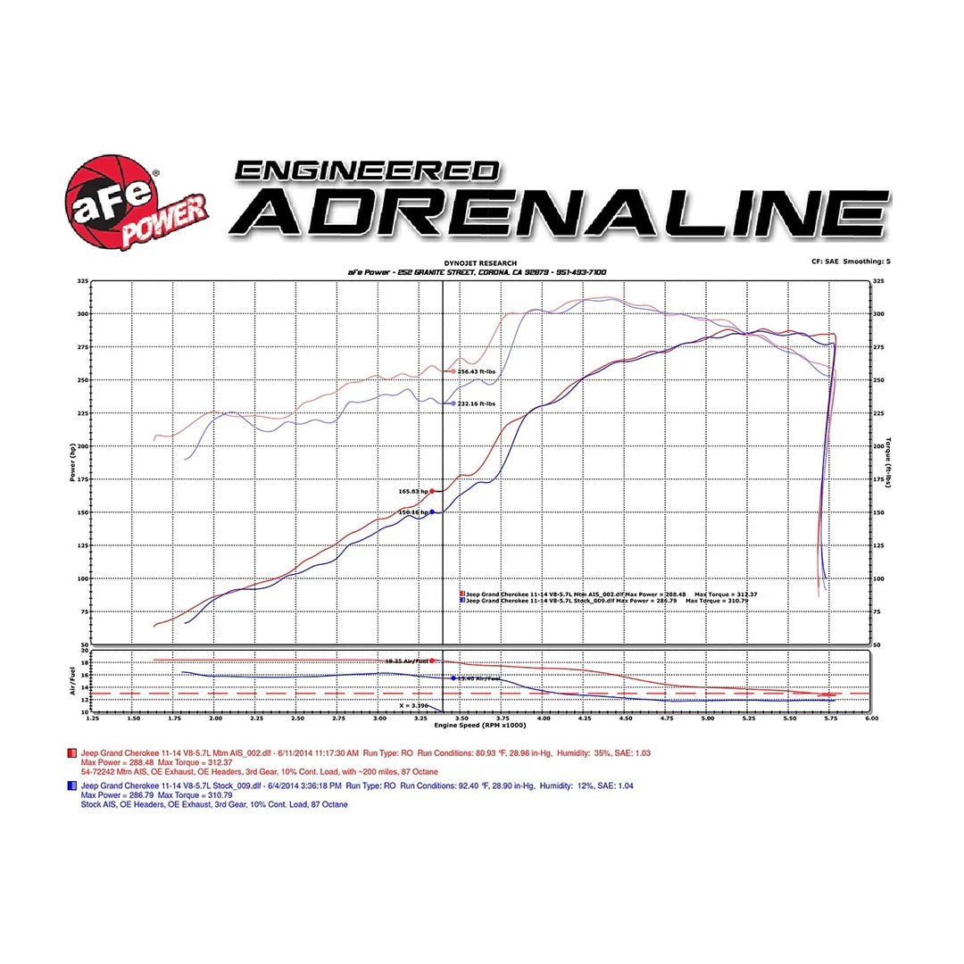 - aFe Momentum GT Cold Air Intake: Features a heat-resistant XLPE housing with an auxiliary air scoop and choice of Pro Dry S or Pro 5R filters, designed to boost airflow and engine performance for 2011–2017 Jeep Grand Cherokee 5.7L HEMI.