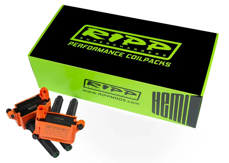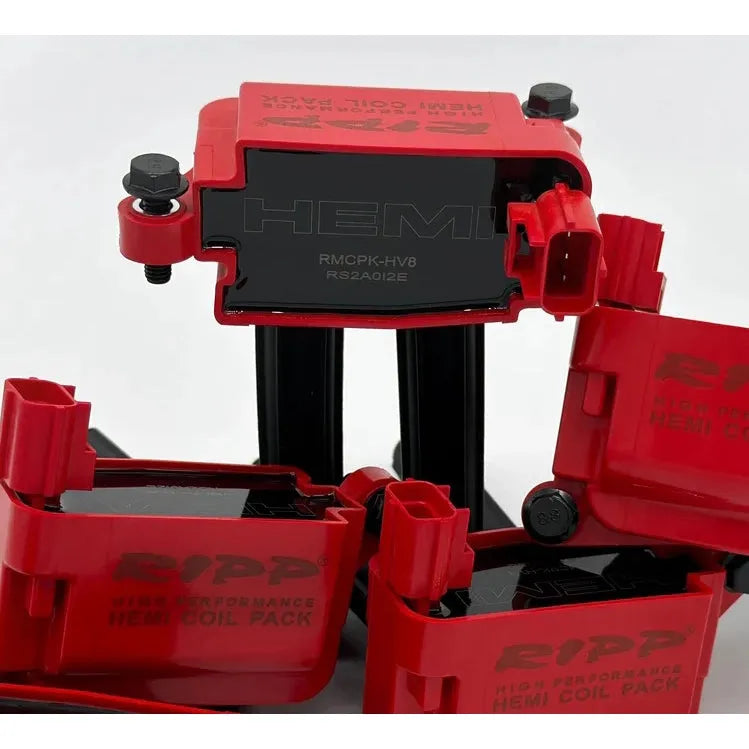 - Ripp HEMI High Performance Coil Packs: Set of 8 coil packs engineered with increased windings and high-quality materials to boost spark energy, enhancing flame speed and adding up to 25-30 wheel horsepower on 6.4L engines. Plug-and-play design with heat-resistant housing and boots.