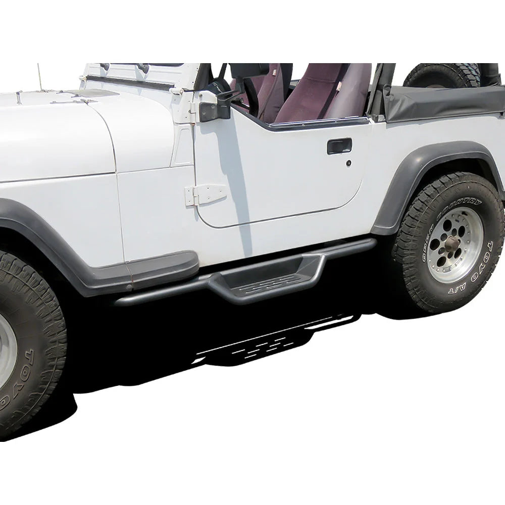 WB10NJH4B APS 97-06 Jeep Wrangler TJ Side Armor Nerf Bars (Pair). The aggressive styling matte black sidestep gives your vehicle an upgraded appearance. The running board features heavy-duty carbon steel construction, ensuring durability and reliability.