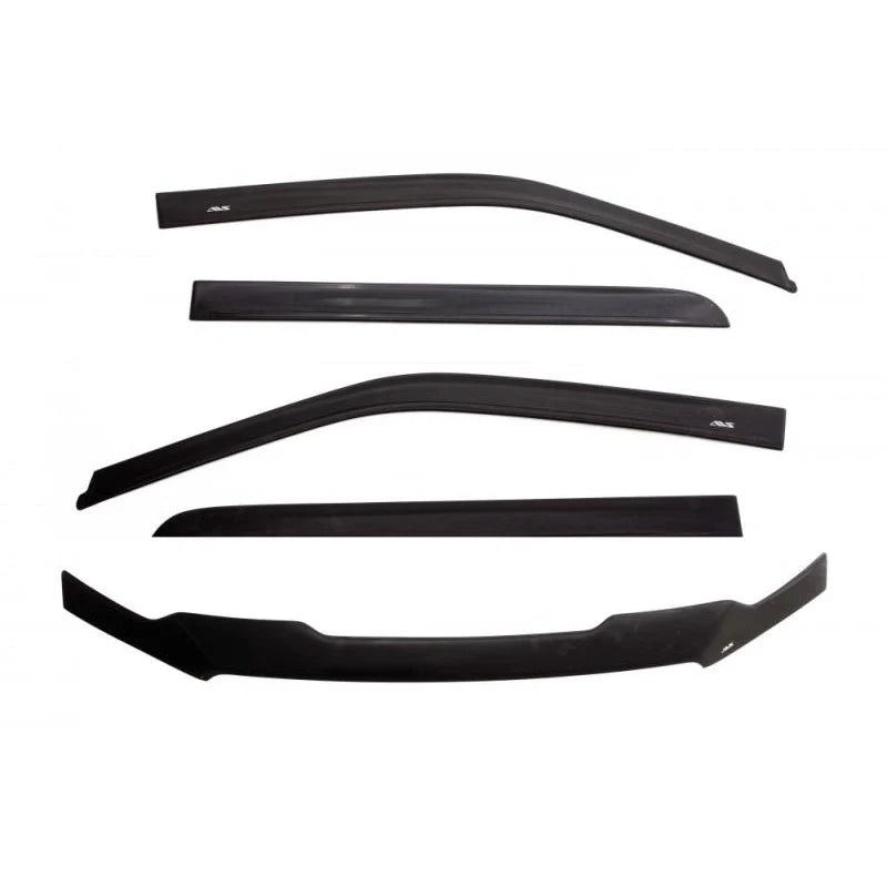 Commuters and road warriors who drive a lot of miles in their vehicles will appreciate the functionality and long-lasting durability of our one-of-a-kind combo kit. The Aeroskin hood shield features a low-profile design that flows with the contours of your vehicle while providing unbeatable protection for the front edge of your hood. The externally mounted Low Profile Ventvisor features a curved design made of impact-resistant acrylic that shields you from whatever weather comes your way. But it does more than protect you from the elements -- it refreshes your ride by circulating air and eliminating unwanted odors inside your vehicle. When used together, the Ventvisor and Aeroskin hood shield makes your drive more enjoyable and protected. Both AVS products are car wash safe and easily installed using the included 3M automotive-grade adhesive. Available in a matte black finish. Proudly made in the USA with global materials.