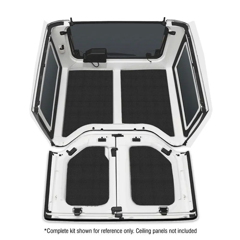 Each piece is engineered to fit precisely within the rear side window trim area of Jeep Wrangler models from 2007 through 2018, ensuring a perfect fit and optimal performance. This kit is compatible with factory and aftermarket headliners, providing flexibility in your interior upgrade projects.