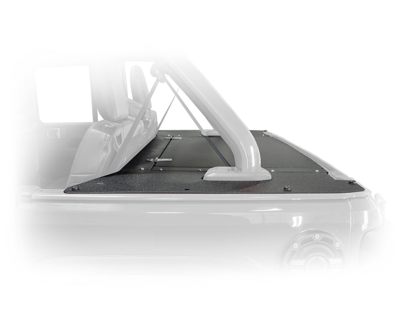 JLRS-01 DV8 Offroad Jeep Wrangler (2018-2021) Rear Storage Cover. The DV8 Offroad Rear Storage Cover provides secure, lockable storage behind the rear seats for Jeep Wrangler Unlimited 2018-2021 models. Crafted from durable 1/8-inch steel, it offers protection when driving topless and supports up to 150 lbs. The cover features gas shocks for easy access and uses factory door locks for added security, making it ideal for 4-door Jeep Wrangler owners seeking organized, protected cargo space without sacrificing style or function.