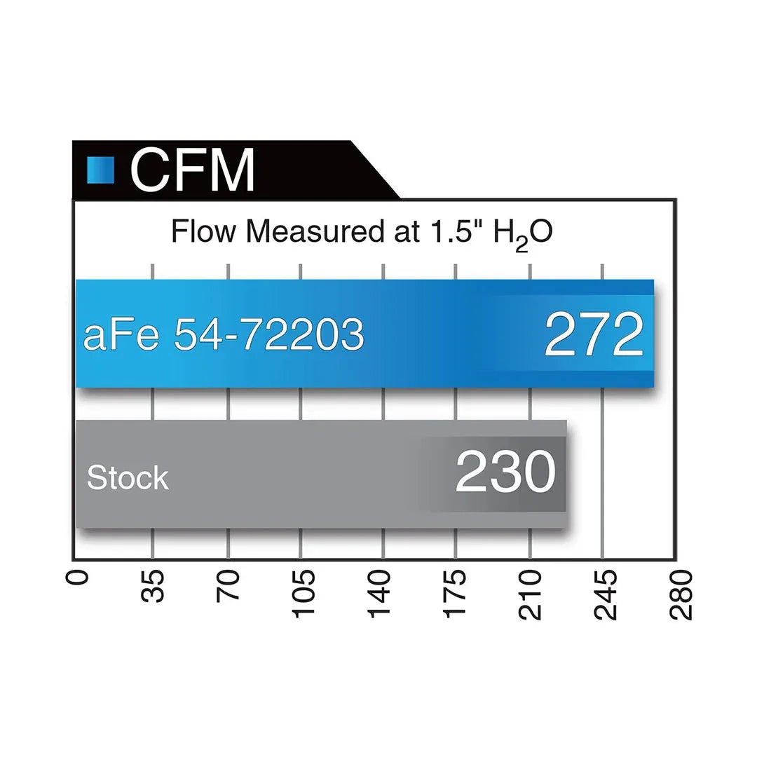 - Outflows factory intake by 18%, delivering measured airflow of 272 CFM at 1.5" H2O (Pro 5R filter configuration)