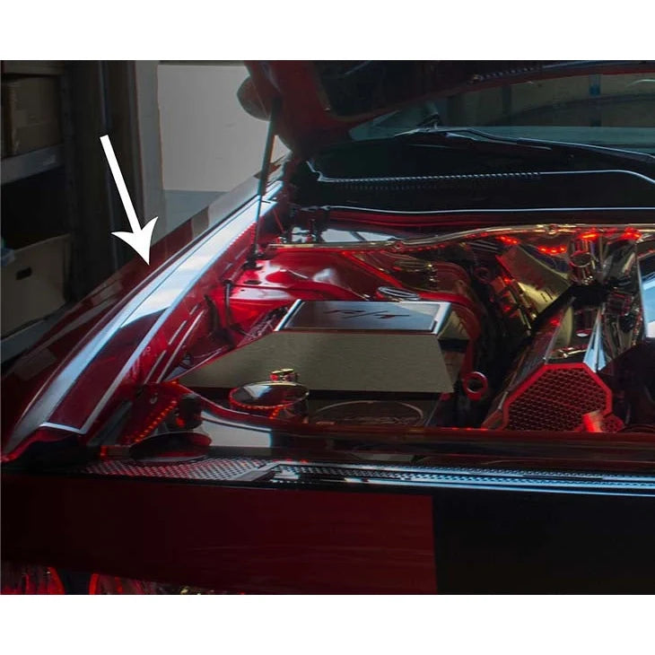 153084 / 153085 / 153086 / 153087 / 153088 / 153089 American Car Craft 08-23 Dodge Challenger Fender Caps. Frame your vehicle engine bay brilliantly with these impressive Polished or Brushed Stainless Steel Fender Caps available with or without LED illumination. Sometimes you just want more carbon fiber. Here's a great way to add the extra attention-grabbing element to your vehicle engine bay, add some easy-to-install Fender Caps in Real Carbon Fiber.