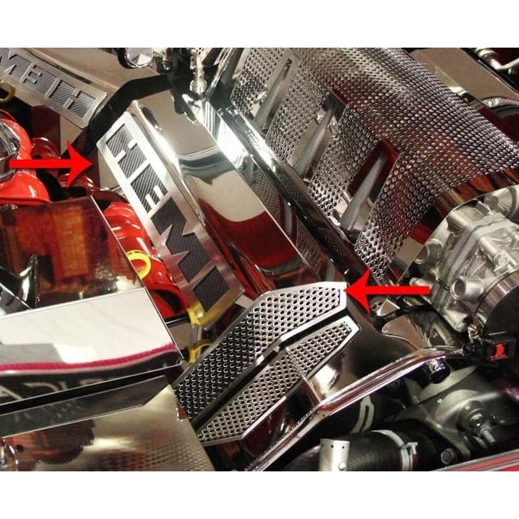• American Car Craft "HEMI" Polished / Perforated Fuel Rail Covers (Factory Air Box)