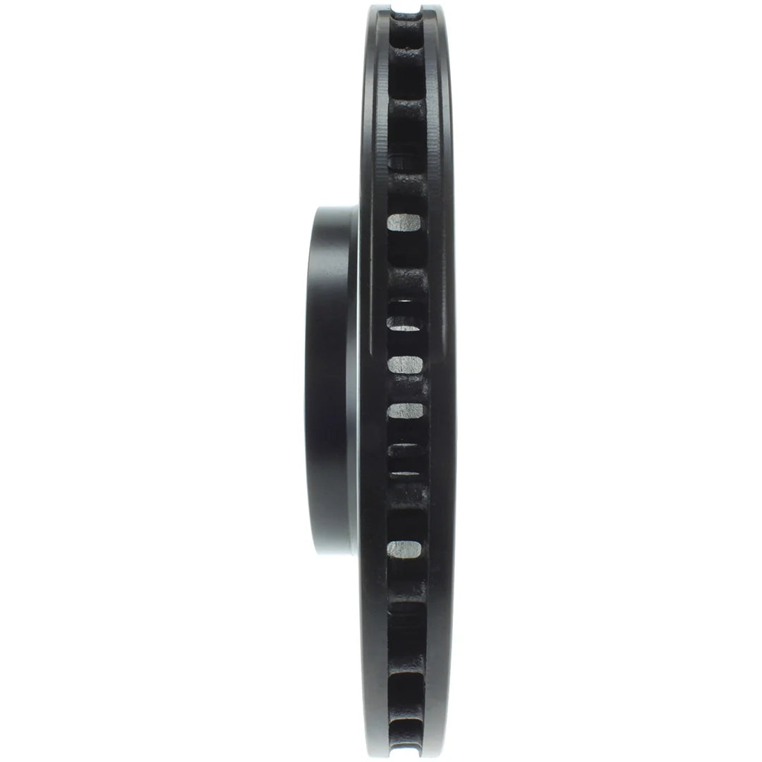 Manufactured with Stoptech’s proprietary Power Alloy metallurgy, these rotors feature a carefully controlled casting process that enhances hardness and tensile strength, ensuring long-lasting durability. The black e-coating applied electrostatically protects critical surfaces from rust and corrosion, especially in areas where the rotor contacts the hub and wheel, preventing lateral runout issues.