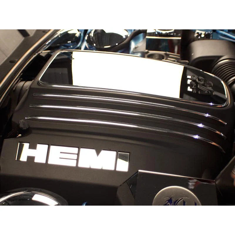 These trim pieces are designed to fit the 5.7L HEMI engine, on the engine shroud.