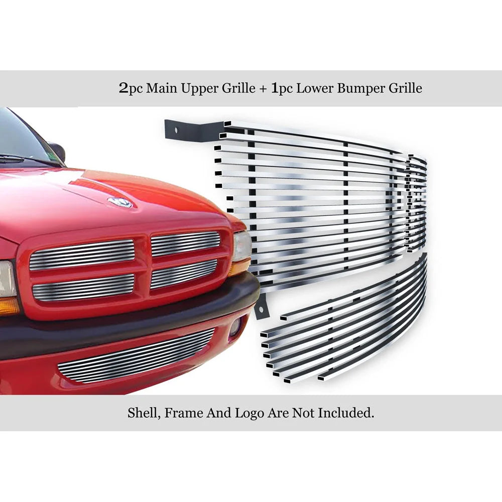 GR04HAB20S APS 97-04 Dodge Dakota & Durango Billet Grilles (Upper & Lower). A unique and sleek design that enhances the look of your vehicle. Made from high-quality stainless steel in a sleek polish finish; to ensure durability and long-lasting performance.