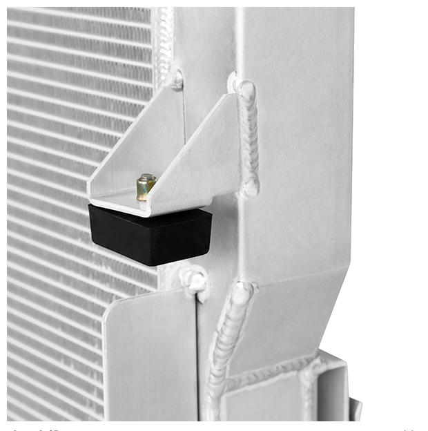 - Strategically designed side plates on the end tanks optimize airflow through the core