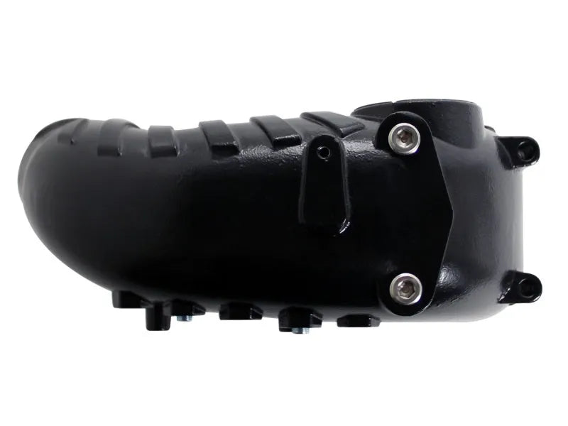 The manifold’s internal architecture features smooth bends and directional vanes that create multiple air paths, effectively minimizing dead air zones and turbulence common in stock manifolds. Its higher arc and enlarged passages further enhance airflow volume and velocity, directly improving engine breathing and turbocharger efficiency.